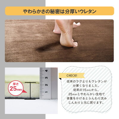 素材 表地:高密度マイクロファイバー180g/m2 毛足約4〜5mm 中材:高密度低反発ウレタン、約20mm 裏面:不織布(PVC点滑り止め)約1mm 備考 開封後は新品の為においのする場合がございます。