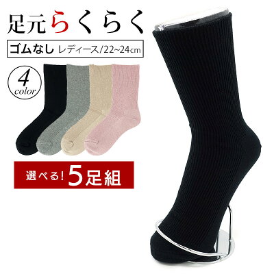 クーポン配布中 【日本製】 5足組 レディース 靴下 ゴムなし ずれにくい 22-24cm 抗菌防臭 ソックス 黒 靴下 無地 ソックス レディース ブラック グレー ローズ ベージュ 敬老の日 5足 靴下 セット 高齢者 むくみ 女性用 リブソックス 締め付けない靴下 婦人 くつ下 送料無料