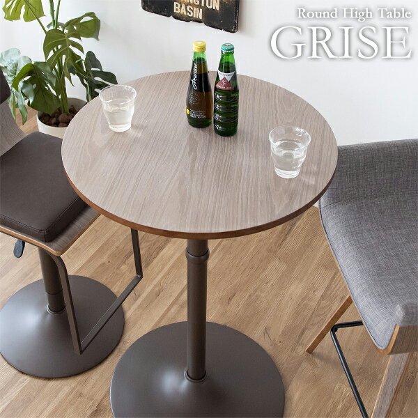 ラウンドハイテーブル バーテーブル 幅60cm 高さ90cm カフェ おしゃれ デザイン インテリア テラス スチール GRISE ラウンド 円卓 円型 丸 2人掛け カフェテーブル 天然木 机 作業台 喫茶店 高級感 モダン レトロ アンティーク