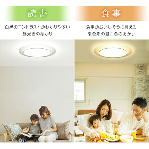 【選べる6つのあかり】生活シーンに合わせて、6つのパターン(読書、食事、くつろぎ、だんらん、シアター、作業)から選べます。