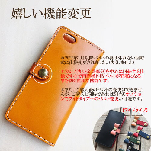 ・カラーセミオーダーメイド ・ベルト有り/無し選択可 ・カードポケット追加オプション(別売り) ・落下防止リング取付けオプション(別売り) 当革製品の特徴と注意 ・こちらの商品はヌメ革(タンニン鞣し)を使用しております。