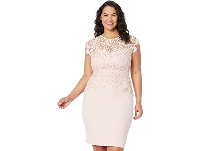(取寄) ヴィンスカムート レディース レース モック ネック ペプラム シグニチャー ストレッチ クレープ スカート ボディコン Vince Camuto women Lace Mock Neck Peplum Signature Stretch Crepe Skirt Bodycon Blush