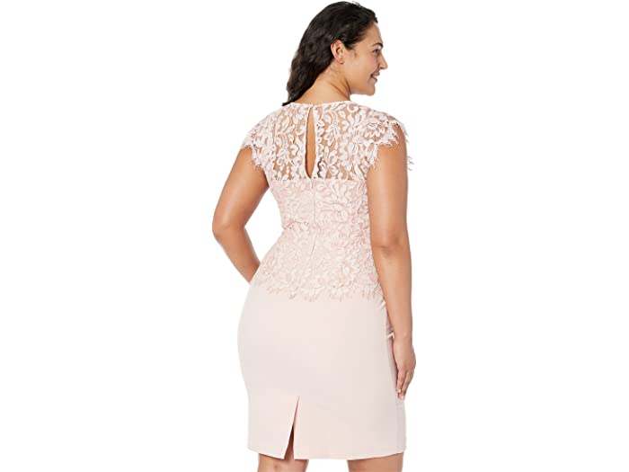 (取寄) ヴィンスカムート レディース レース モック ネック ペプラム シグニチャー ストレッチ クレープ スカート ボディコン Vince Camuto women Lace Mock Neck Peplum Signature Stretch Crepe Skirt Bodycon Blush